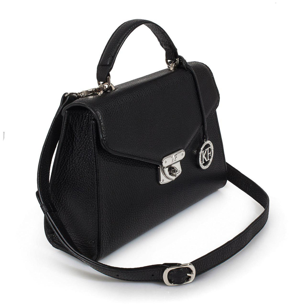 Delivery: In most cases our goods are shipped by FedEx or Ups Express. On rare occasions the goods might be shipped by Ukrposhta. The clients should check in advance an estimate of the amount of customs duty and value added tax. Black genuine leather handbag from ukrainian designer Katerina Fox. This model is designed for women who appreciate the sleek design combined with functionality and comfort. High-quality and reliable hardware ensure long service bags. The internal space of a bag is equipped with one spacious compartment and two patch-pockets and one zipper pocket. The bag is closed with a zipper. The bottom of the bag is protected with metal legs. There is a long handle that allows you to wear the bag on the shoulder. The kit also includes a storage bag.